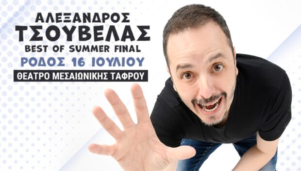 Και ο Αλέξανδρος Τσουβέλας επιστρέφει στο νησί της Ρόδου την Κυριακή 16 Ιουλίου για το “BEST OF” Summer Final Tour, στο Θέατρο της Μεσαιωνικής Τάφρου , με τα καλύτερά κείμενα της πολυετούς πορείας του εμπλουτισμένα με προσωπικά του βιώματα και ιστορίες απείρου κάλλους!
